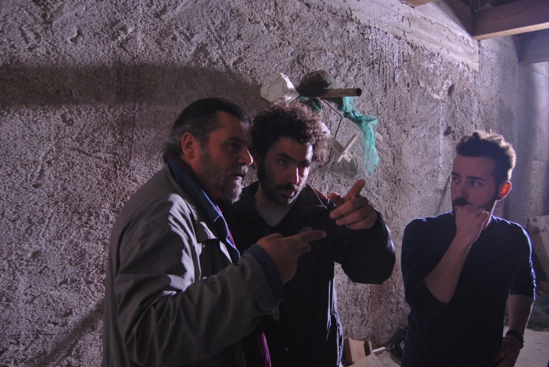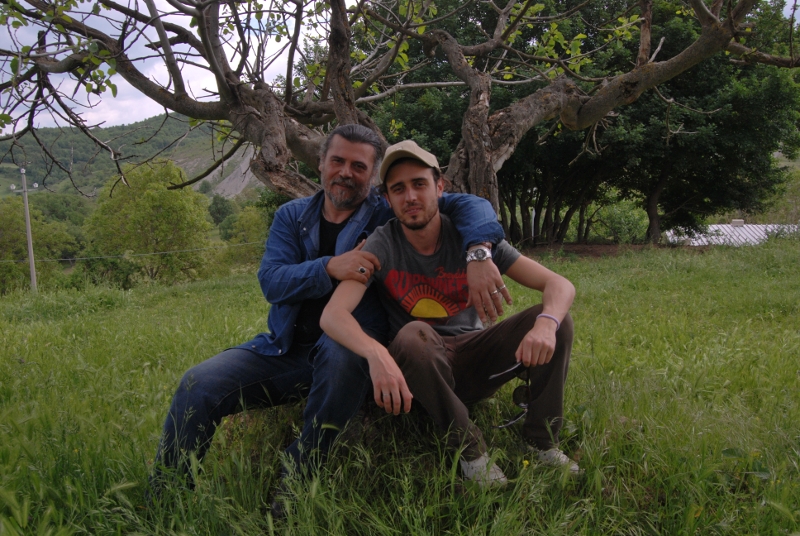 l'amico assistente Giuseppe Di Santo sul set di Angelo Bianco